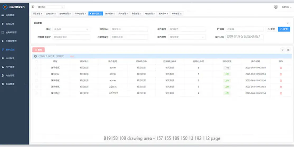 Operation record: The operation record is the record of the current lifting column falling and rising. The system supportsthree The types of operations are remote control, mini program, and background management system.Detailed recordThe operator, the operation time, and the status of the operation.