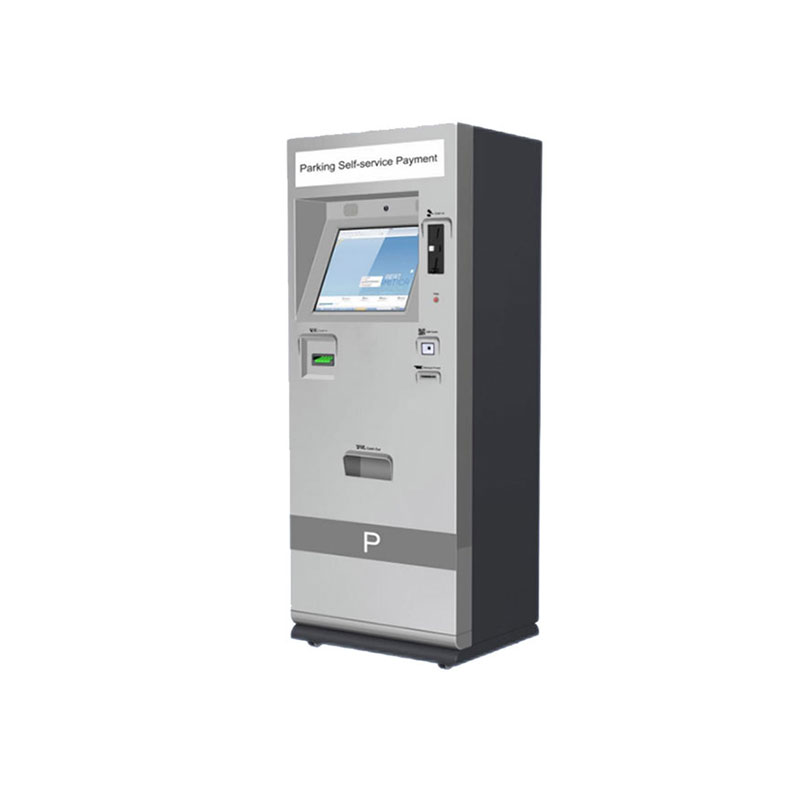 Payment at the shopping mall parking self-service payment station, supporting cash and mobile electronic payment.